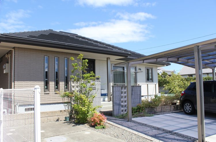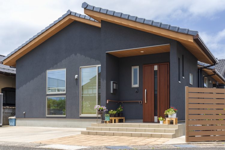 こちらの平屋事例は、建物の外観は、シックなグレーを基調にしていて落ち着いた印象です。