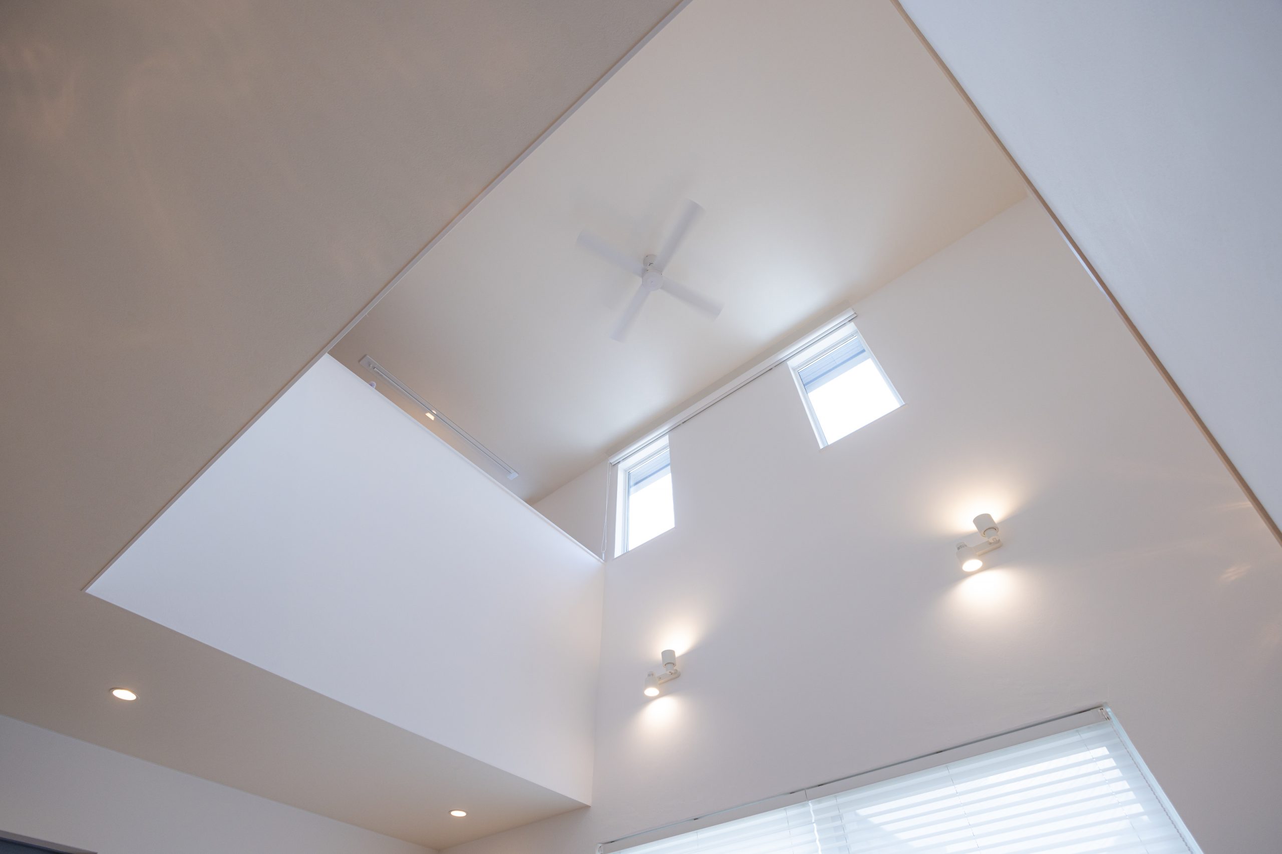 2つの高窓から明るい光が差し込む吹き抜けのある注文住宅