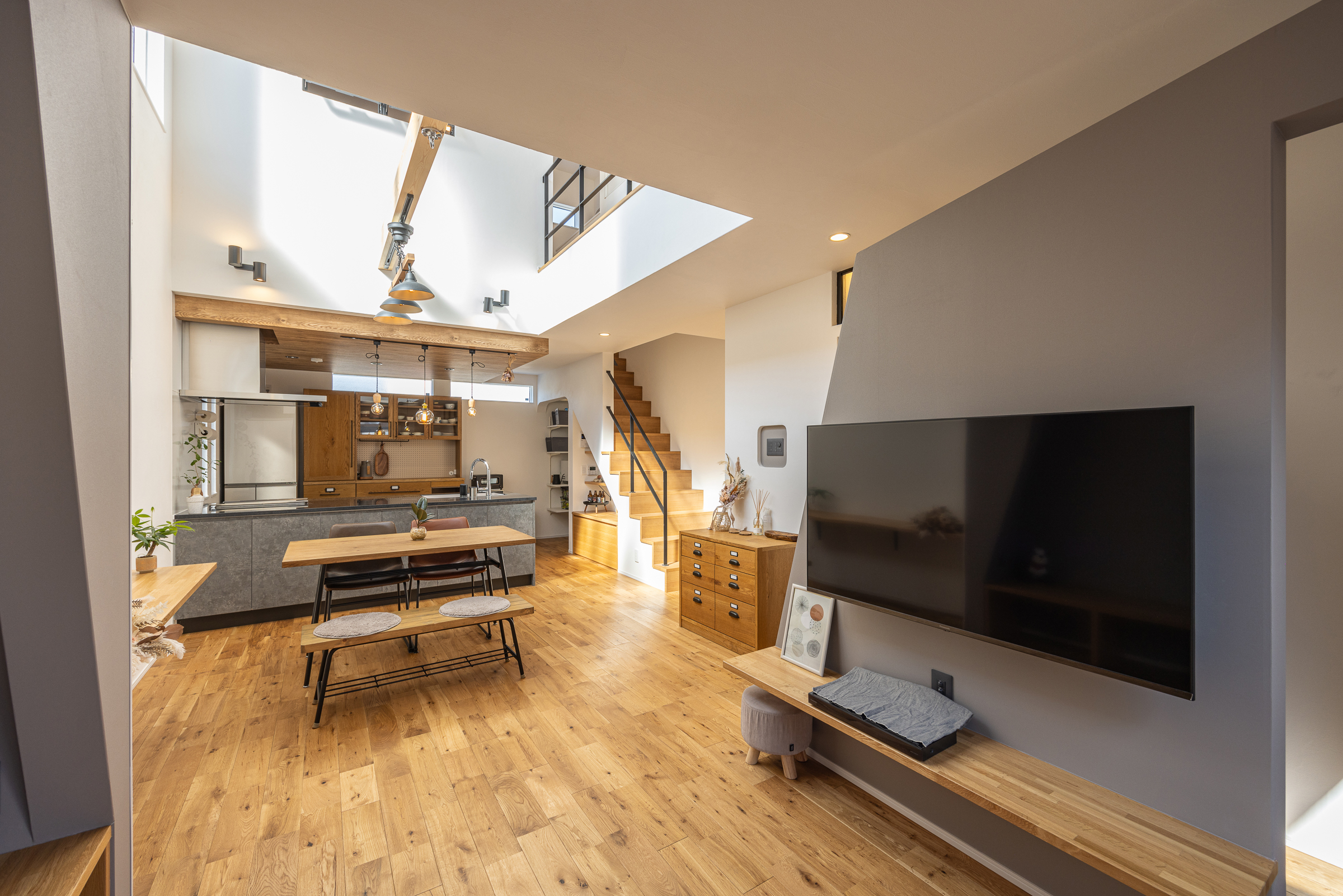 家族が楽しく集まれる吹き抜けリビングの注文住宅