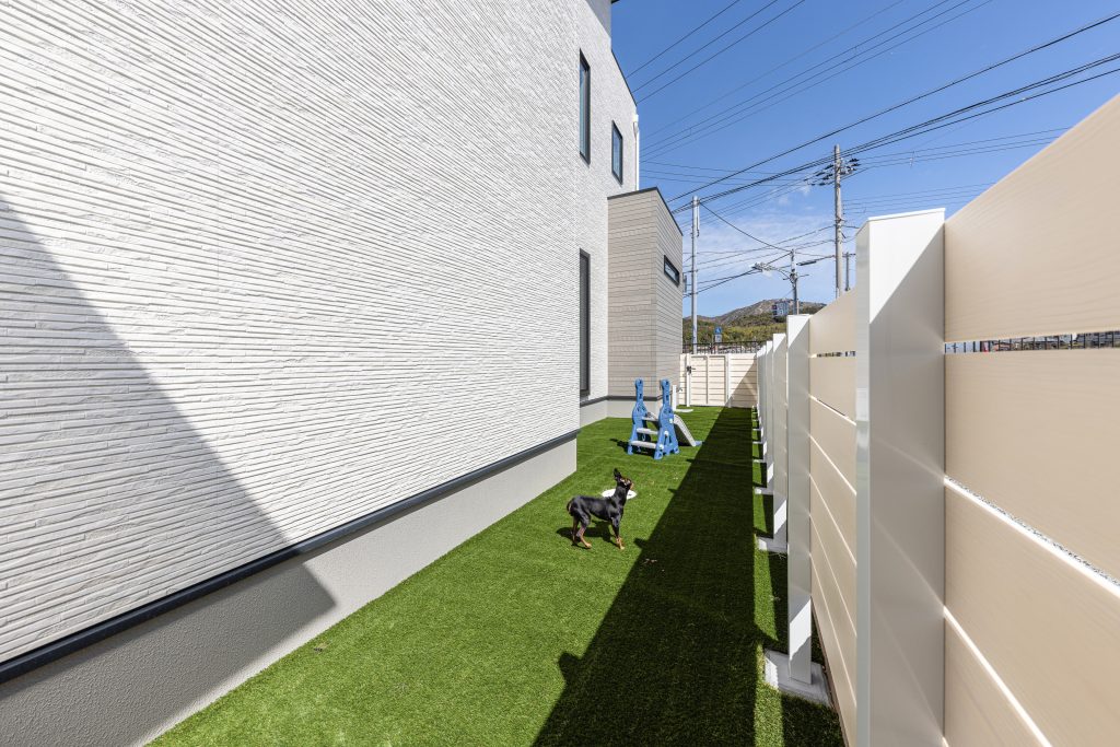 建物に囲まれた中庭は、外部からの視線を遮りつつ、室内からの見守りがしやすい空間です。子どもの遊び場や洗濯物干し場としても適しています。