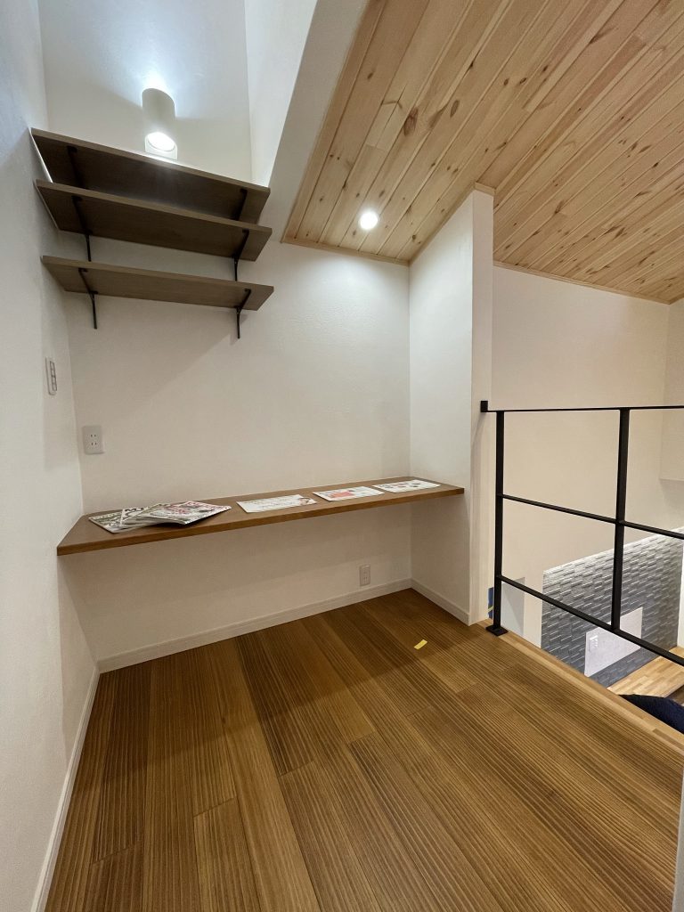 階段下の空間も少し床を下げることでうまく書斎スペースとして