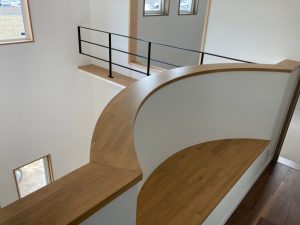 【新築見学会@三木市】2階ホールからリビングを見下ろすスタディスペースのあるお家