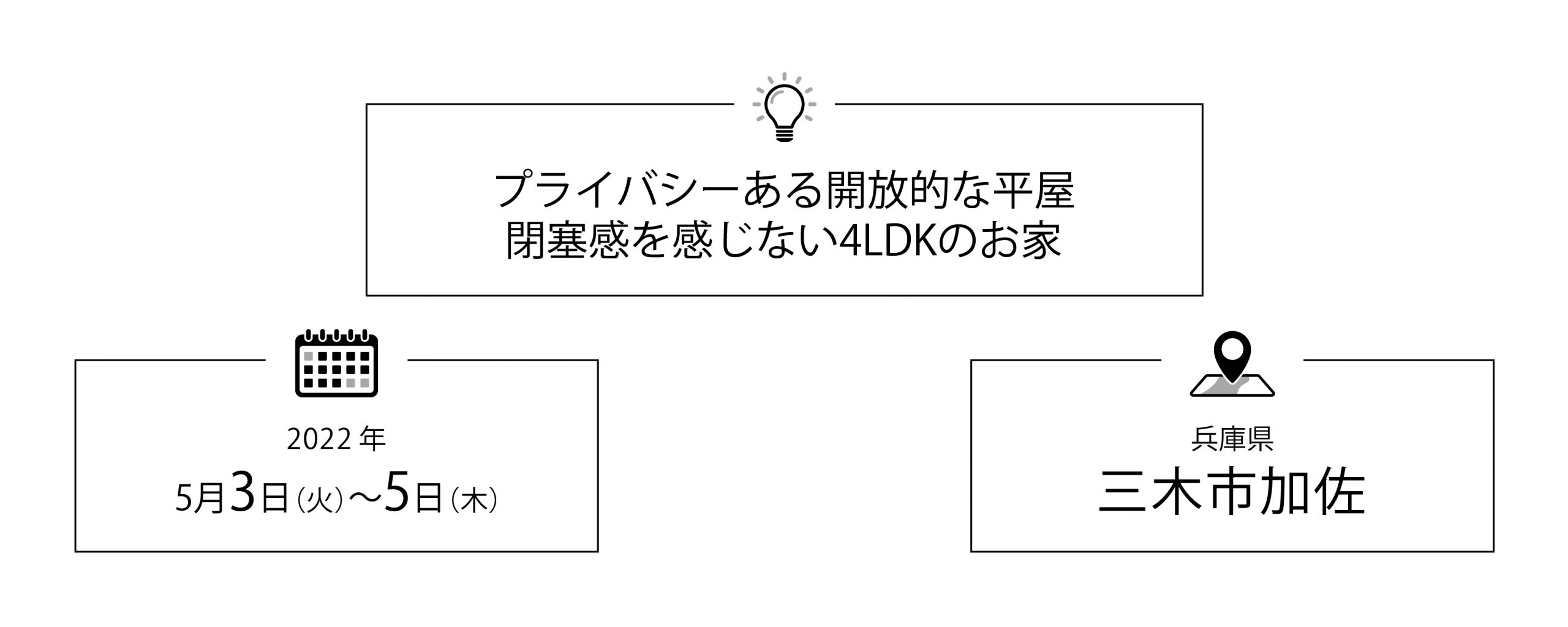 秋山住研では、5/3(火) – 5(木)に三木市加佐にて、完成お披露目会を実施いたします。