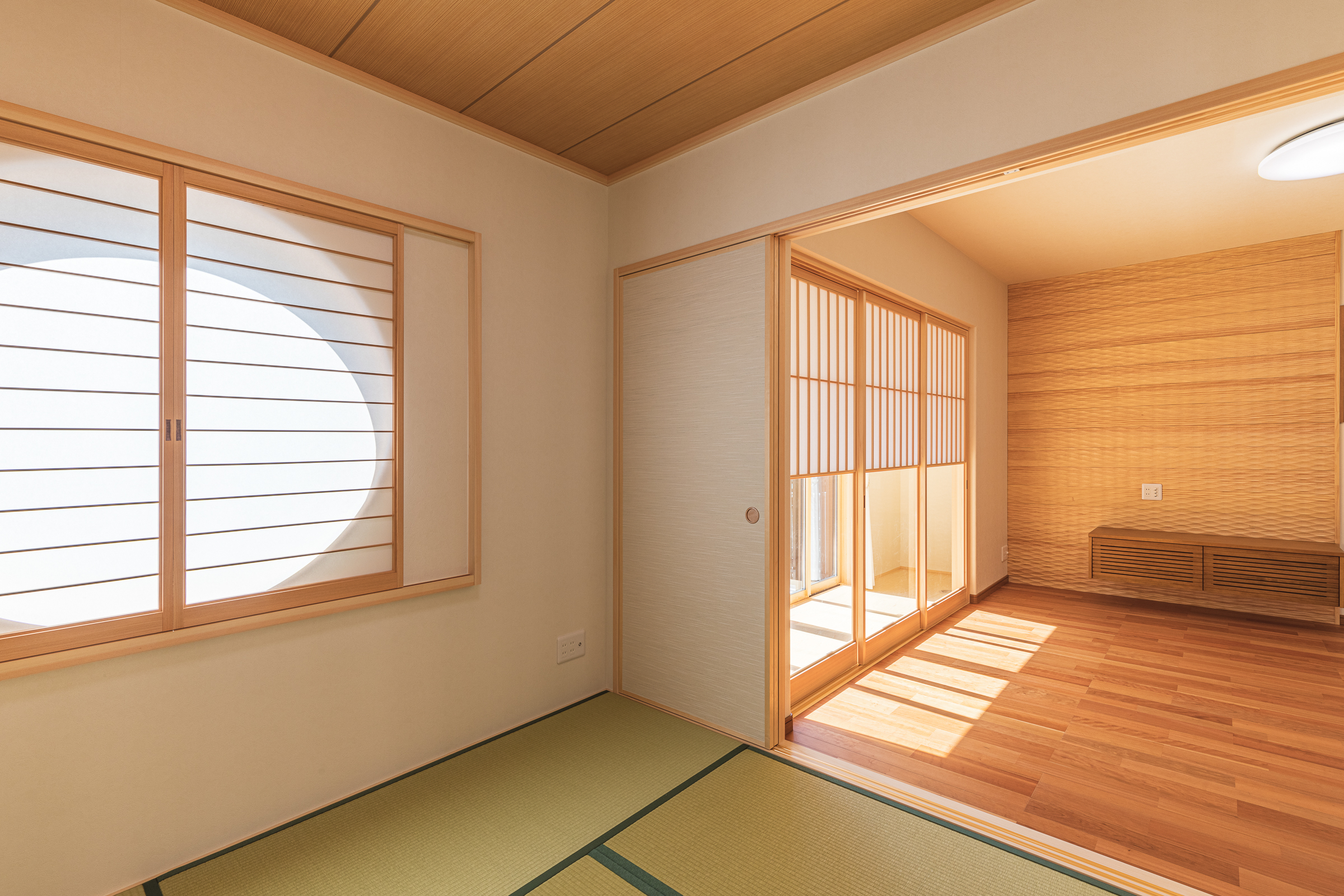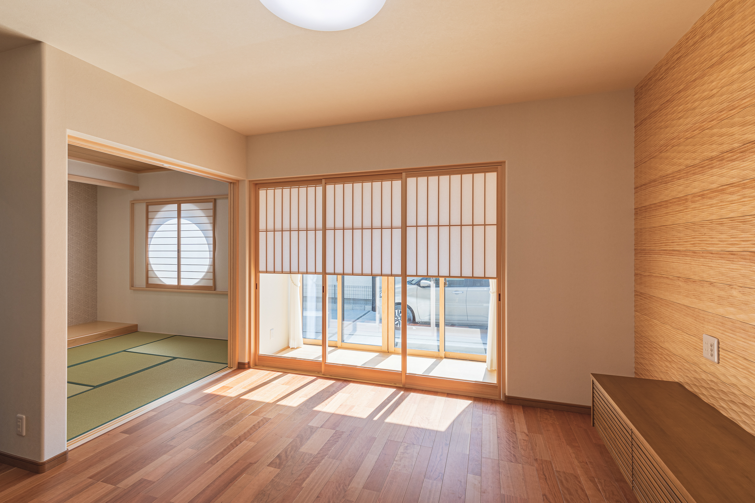 そんなリビングは、隣接する約5.3帖の和室や掃き出し窓からつながるウッドデッキによって、手狭感を感じにくようにプランニング。