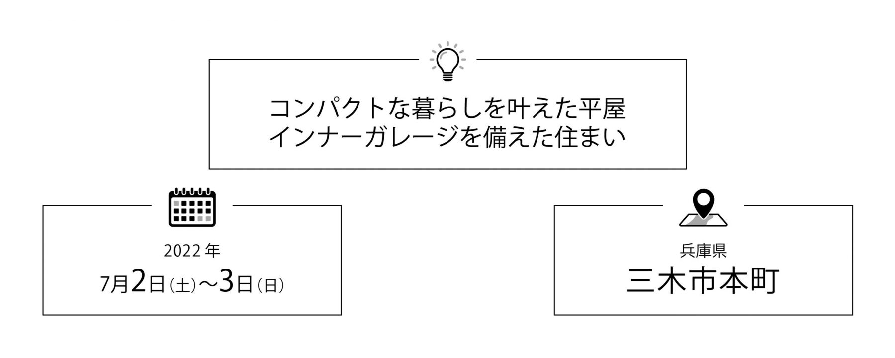 【完成お披露目会@三木市本町】コンパクトな暮らしを叶えた平屋。インナーガレージを備えた住まい。