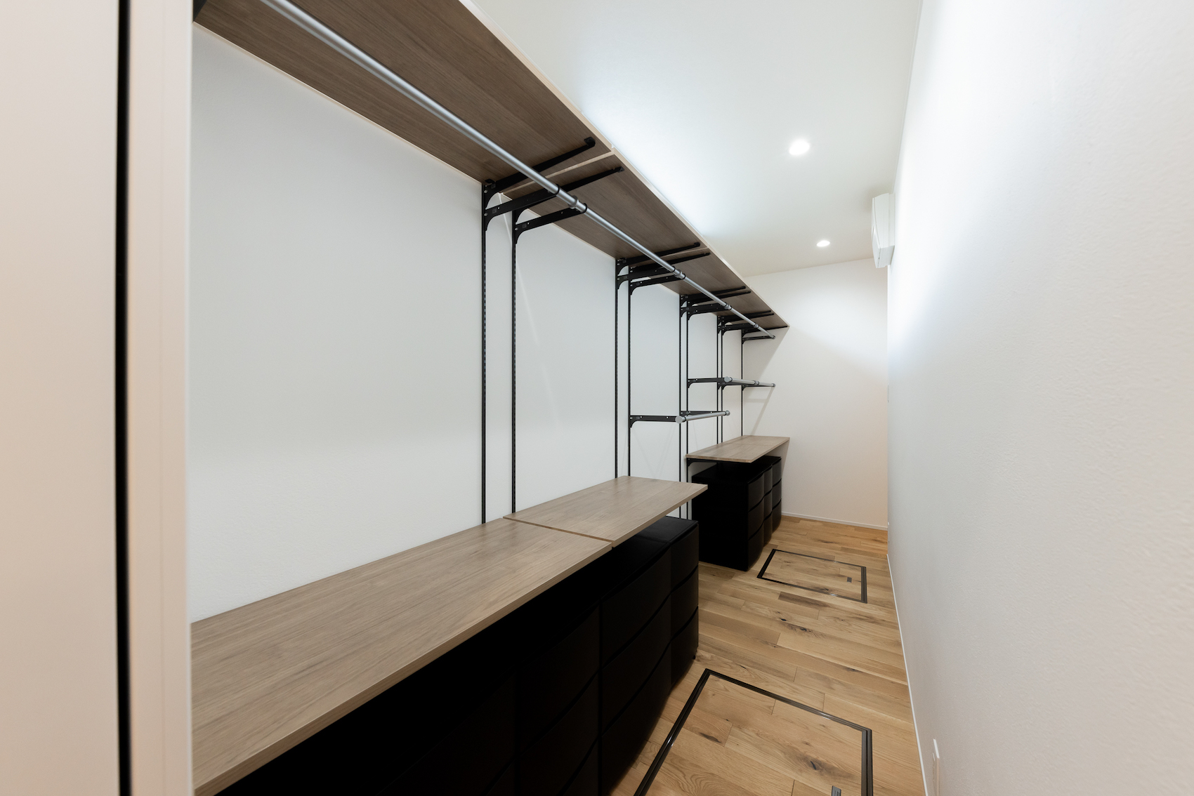 シューズクロークからは、直接ホールに上がれるため、お家の顔の玄関は常にスッキリキープしやすいのも嬉しいポイント。
