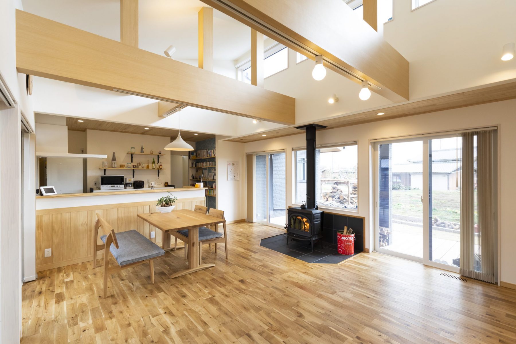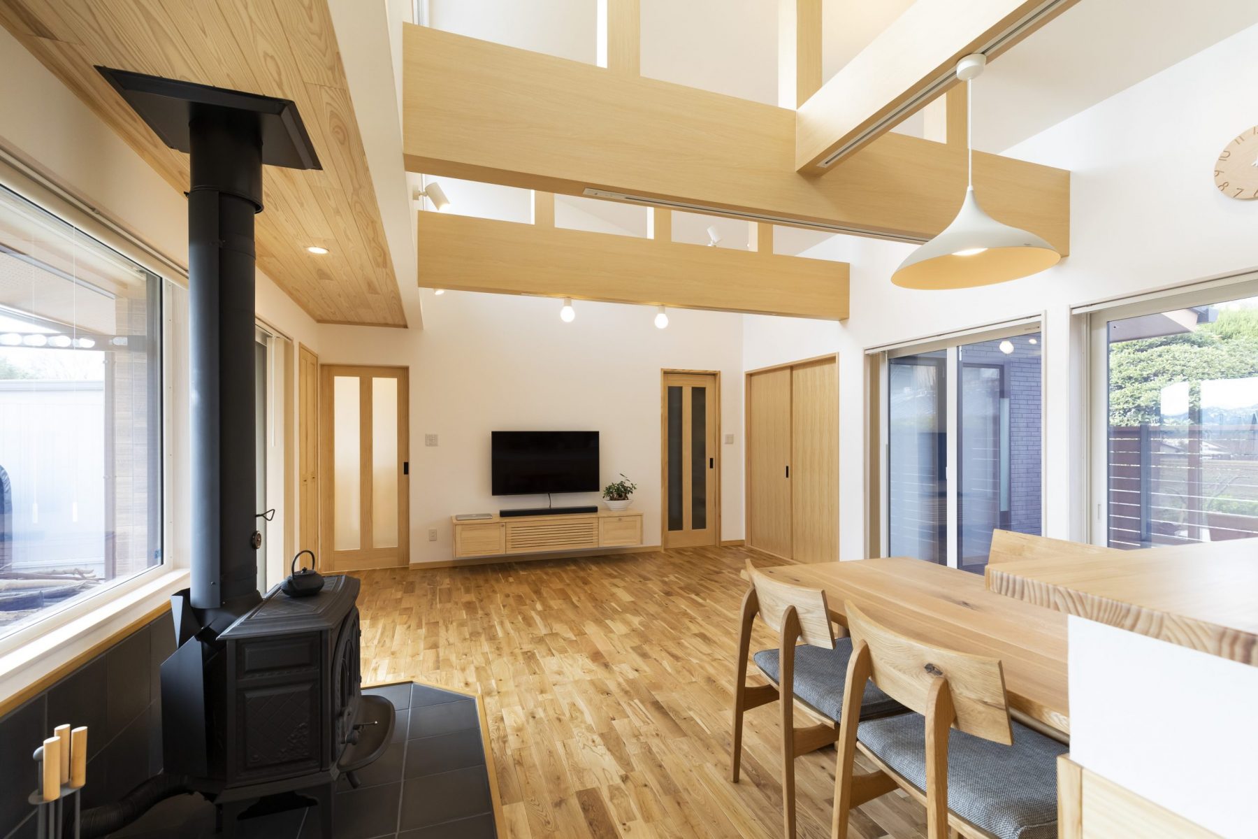 スッキリした状態をキープしたいLDKには、オーナー様こだわりの魅せ梁が。
