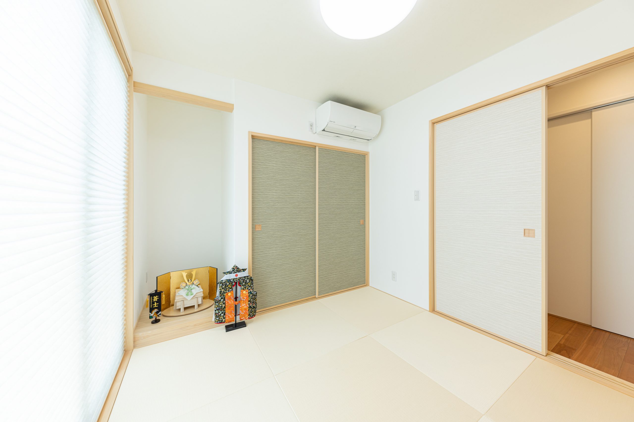 和室ならではのインテリアが置けるのもポイントで、大きな収納も設置しているため収納にも困らない、多目的で使える和室スペースです。