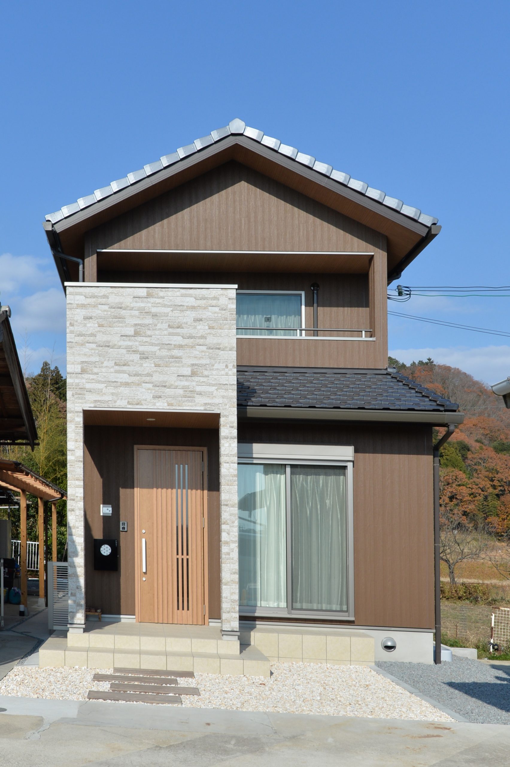 最初に紹介するお家の特徴は、ブラウンを基調とした和モダンな外観です。落ち着きのある色合いに瓦屋根を組み合わせ、どこか懐かしさを感じるデザインに仕上げました。