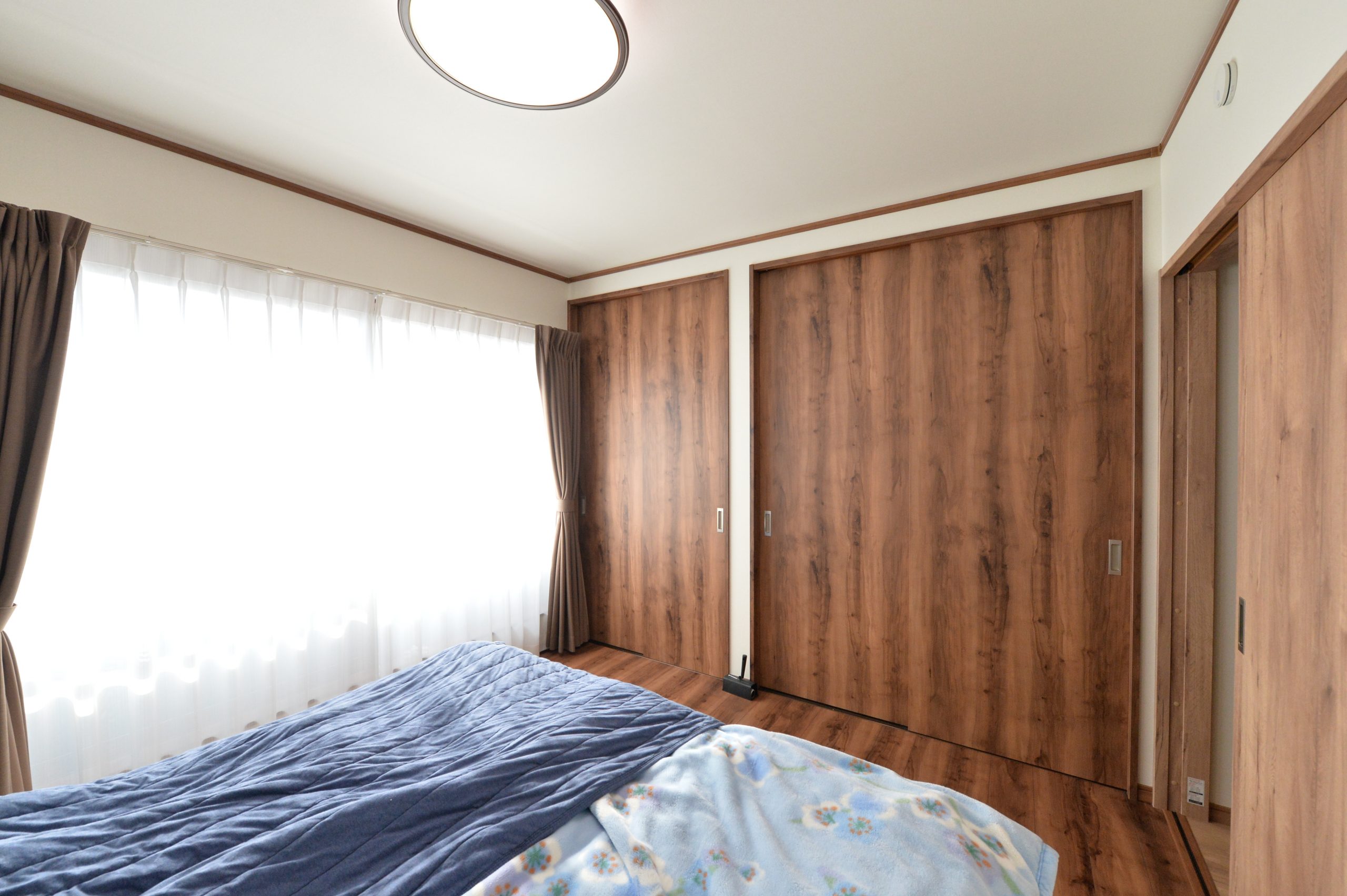 さらに、大きな窓を設置することで、朝日や日中の光をたっぷり取り入れることが可能に。自然の明るさを活かし、より開放感のある快適な寝室が完成しました。