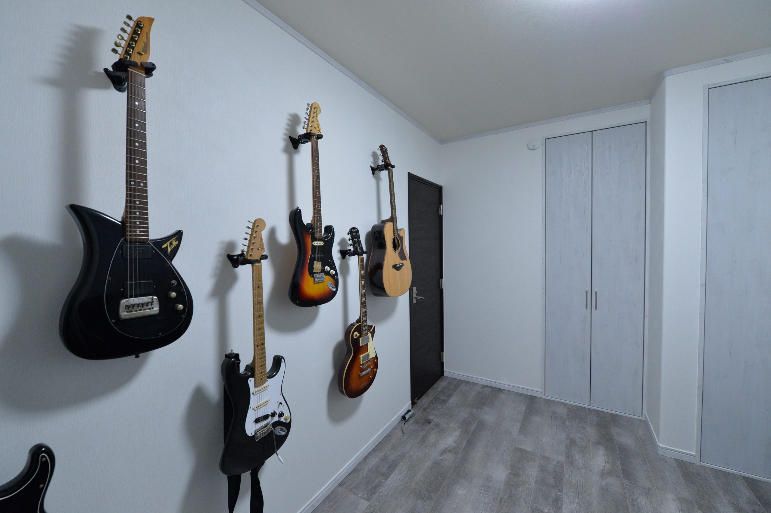 和を感じる畳コーナーと収納力抜群なギター部屋がある家