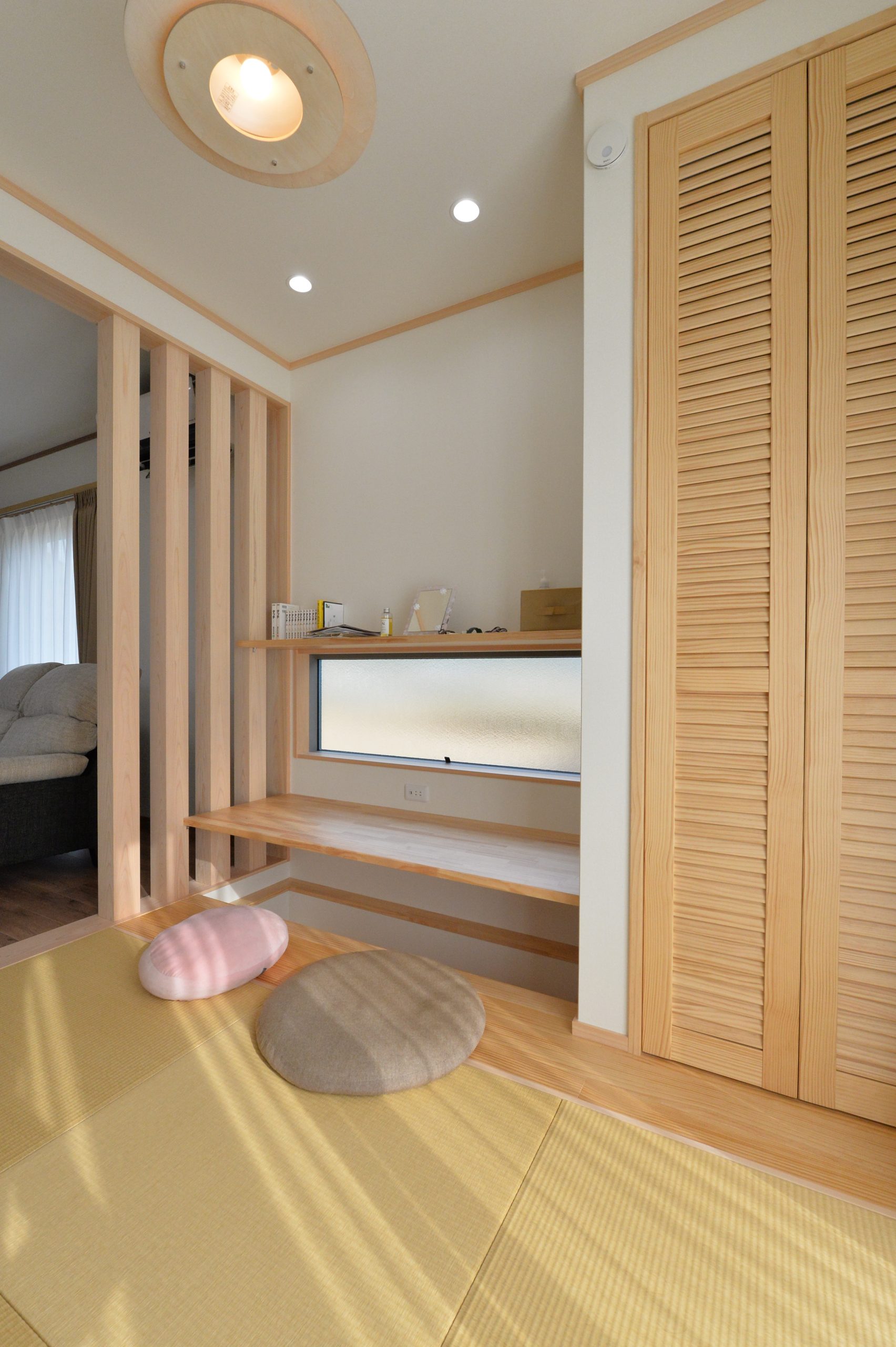 最後に紹介するお家の特徴は、小上がりの和室です。畳のある空間を取り入れることで、リラックスできる癒しのスペースを実現しました。
