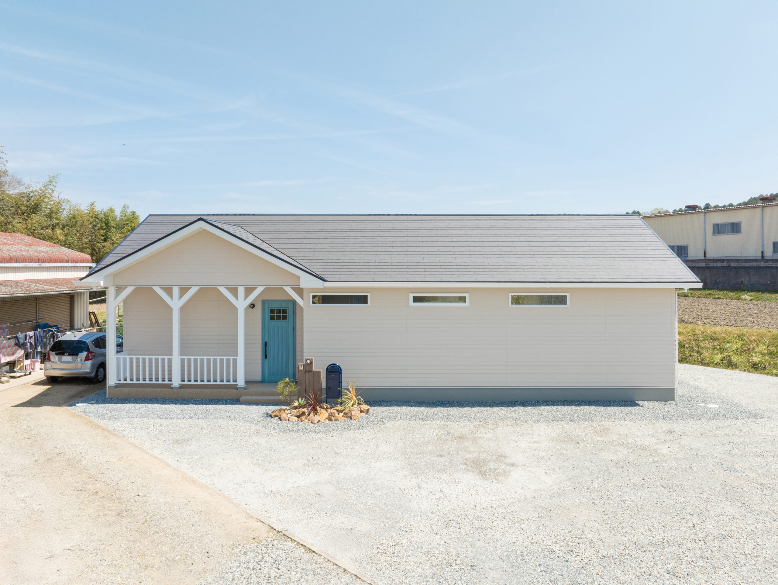 今回ご紹介するお家は、白を基調とした外壁に、鮮やかなブルーの玄関ドアが映える爽やかなデザイン。 カバードポーチが印象的なアメリカンテイストの外観は、街並みにやさしく馴染みながらもさりげない個性を演出します。 毎日の「ただいま」が嬉しくなる、センスが光る外観です。